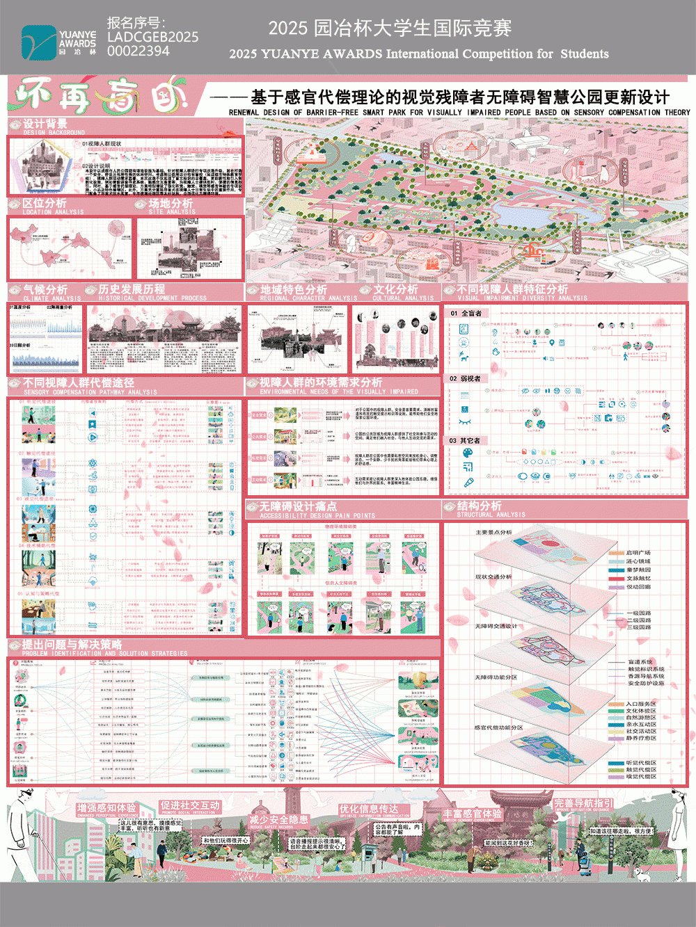 本帖最后由 刘蕴瑜 于 2025-7-19 18:54 编辑 本设计以成都市人民公园现有场地设施为基础,针对视障人群进行专项改造升级,旨在打造一个安全、舒适且包容性强的休闲空间。考虑到公园周 ...